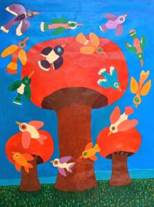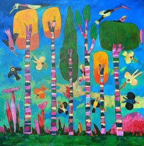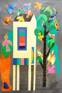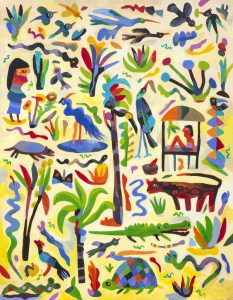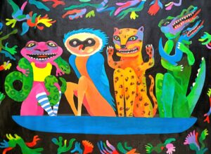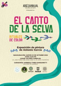 Antonio García traduce la vida de la Amazonia en un cromatismo vibrante. Sus obras son mapas poéticos donde lo ancestral dialoga con lo contemporáneo, invitándonos a escuchar el canto sagrado de la selva: un territorio de memoria, armonía y vida.